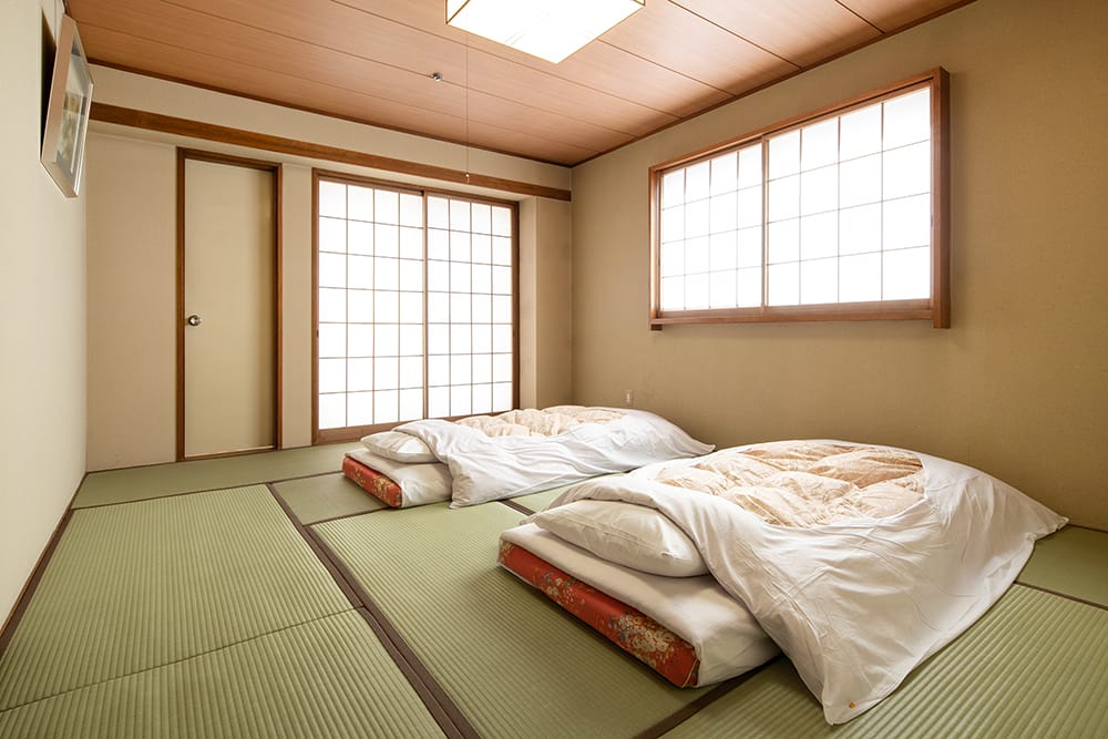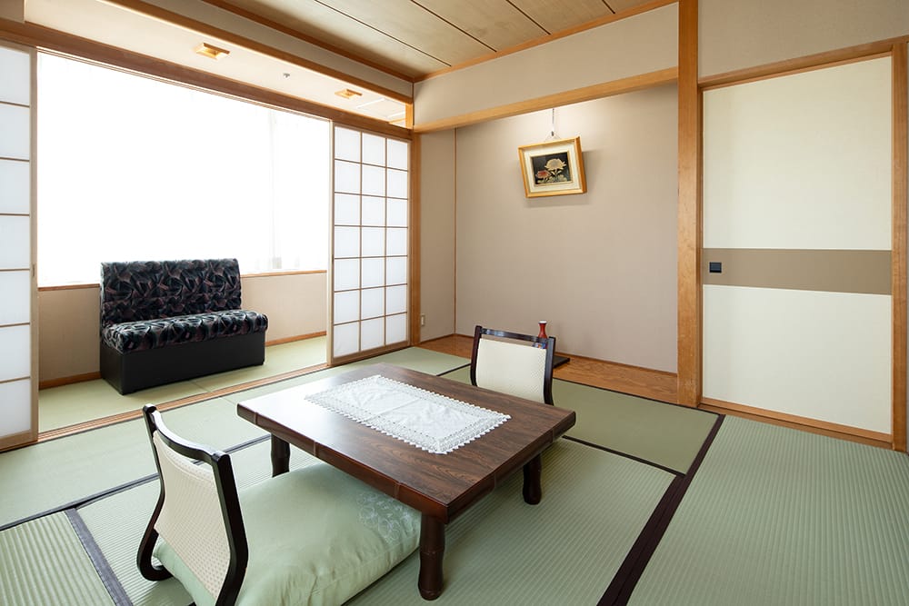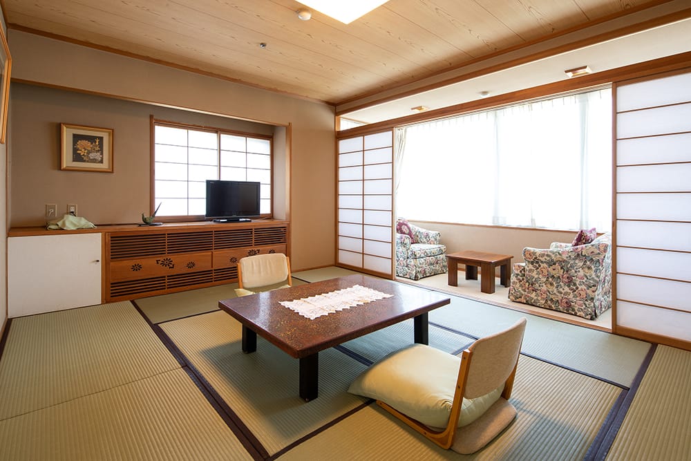 There is a variety of rooms including Japanese, western style and combination rooms. All rooms feature and ensuites with shower, TV and a small fridge. Bathroom amenities include hand towel, toothbrush, Toothpaste, bath towel, shampoo, rinse, body soap, soap, yukata, dryer, shaving, shower toilet, shower cap and comb/brush.