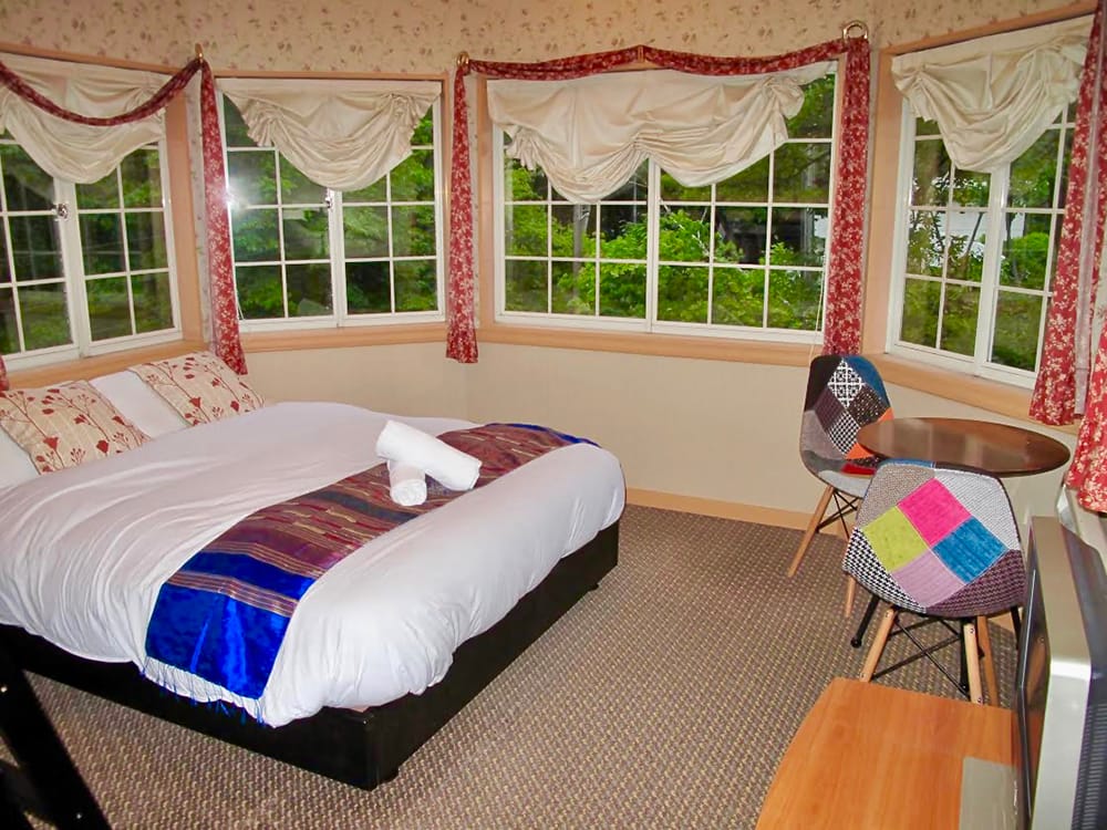 Perched at 900 meters above sea level, the lodge offers stunning views of the surrounding mountains. Arrival and departure shuttles are available from Madarao bus terminal plus shuttles are available to nearby ski resorts plus local restaurants, bars and onsens.