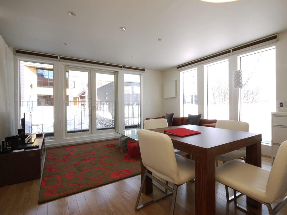 Located in the lower area of Niseko Hirafu yet still convenient to all the village facilities. A 10 minute walk though the picturesque snow lined streets and you are in the very centre of the action. The lower village also has some very cool restaurants and bars for you to explore in the evening. Daily access to the ski lifts are by a free village shuttle bus provided by the resort and the closest stop is just a minute from your doorstep.