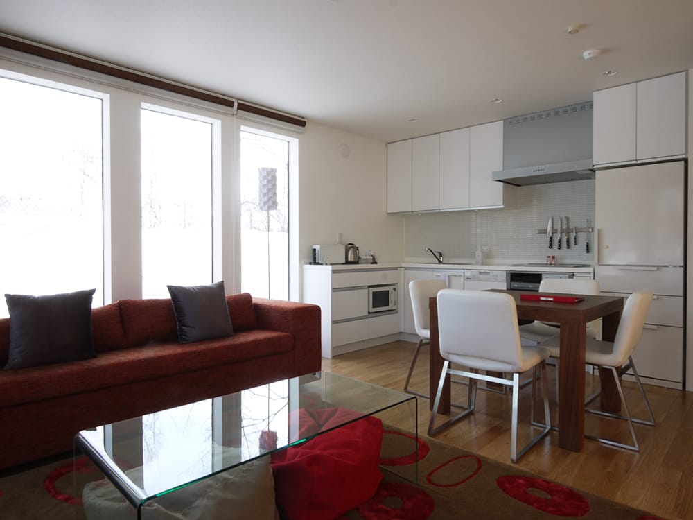 Set in the lower village of Hirafu, these apartments are close to local restaurants and the must visit Yukoro Hot Springs. The village shuttle bus route is just steps away which travels to the village centre (under 800 metres away) and the lifts (less than 900m away).