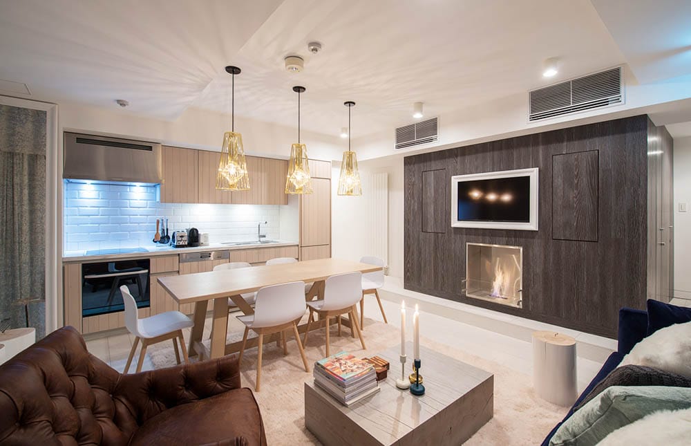 Loft Niseko presents 3 bedroom loft apartments set over four levels. Each apartment has welcoming views of Mt Yotei, a fully equipped kitchen, open plan dining and living areas with a fireplace and chic furnishings. Some luxurious comforts include widescreen TVs with satellite and Apple TV, DVD player, iPod stereo, WiFi and laundry. The dedicated concierge can help to assist at any time throughout the stay.
